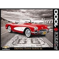 While Route 66 opened up a reliable route to California - the Corvette was one of the first generally available cars that was built for the fun of driving. 1000-Piece Puzzle Dimensions: 19.25 x 26.5. Strong high-quality puzzle pieces. Made from recycled bo..