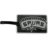 Attractive laser cut rubber luggage tag with San Antonio Spurs colors and logo. Reverse side contains clear window housing your contact information.