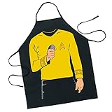 Adult Apron. One Size Fits Most. Decorated with Captain Kirk of Star Trek's character body. Dimensions: 0.5"L x 31"H x 27"W. Made in China.