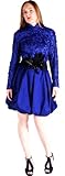Ribbon Design, High-Collar, Long-Sleeve Bubble Dress with Black Feather Belt. Back Zipper.