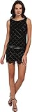 Sleeveless flapper-inspired dress with scalloped sequinning and beaded drop waistline
