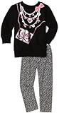 2 piece set / Black sweatshirt top features pink accents / Leopard print leggings have an elastic waistband / Cotton / polyester / spandex / By: Young Hearts