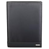 Smartly designed padfolio. Made of Genuine Leather with striped moir lining and a zipper closure. Interior features a double file pocket, two additional full pockets, 3 pen loops, 3 business/credit card pockets, an ID window and two mall pockets. Holds you..