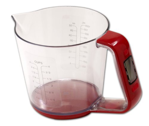 * Combination measuring cup and digital scale, with readout integrated into handle
