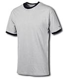 Champion T525C 6.1 oz. Tagless T-Shirt: 100% preshrunk heavyweight cotton; tagless; shoulder-to-shoulder taping; double-needle stitching on sleeves and bottom hem; high stitch density for superior printability; C logo on left sleeve; Ash and Light Steel ar..