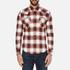 Men?s red and white ?Barstow? checked western shirt from Levi?s. Crafted from cotton flannel and cut for a regular fit, the classic plaid shirt features two chest pockets with snap button closures and a traditional pointed western yoke. Complete with a sna..