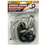 Package contains two (2)stretch bungee cords adjustable from 6 inches to 48 inches