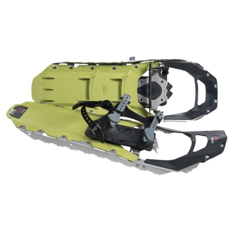 CLOSEOUTS . From ice and crust walking to slush and snow-packed trails, MSR Revo Trail snowshoes deliver aggressive traction and a streamlined design tailored for traversing flat and rolling terrain. Available Colors: RAVE GREEN.