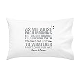 White Pillowcase with Missionary Quote in grey and black "As we arise each morning let us determine to respond with more love and kindness to whatever might come our way." by LDS President Thomas S. Monson