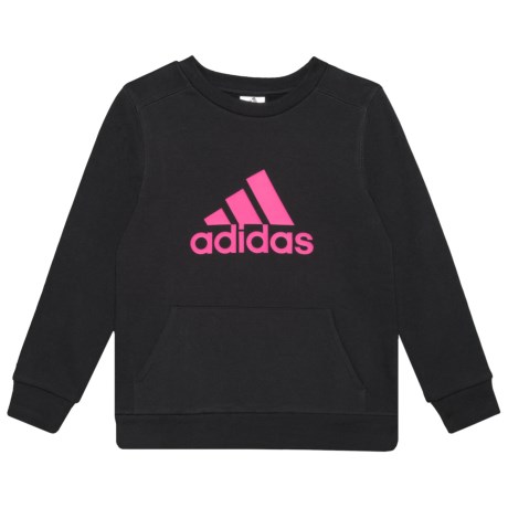 CLOSEOUTS . Warm and comfy -- plain and simple, this adidas sweatshirt is crafted from lightweight, breathable cotton-poly fabric with soft fleece backing. Available Colors: GREY HEATHER W/REAL MAGENTA, BLACK W/REAL MAGENTA. Sizes: S, M, L, XL.