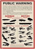 An A3 size poster from World War 1 advising the public to familiarise themselves with the appearance of British and German aircraft.