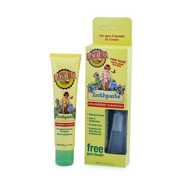 Toddler Toothpaste Strawberry Banana by Earths Best 1.6 oz Paste Toddler Toothpaste Strawberry Banana 1.6 oz Paste Made with delicious all-natural strawberry banana flavors plus calcium lactate this toothpaste safely and gently cleanses delicate gums and p..