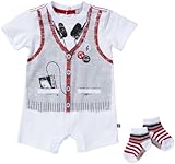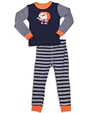 Petit Lem - Boys Long Sleeve Guitar Gorilla Pajamas, Navy, Orange, Grey, Solid Top With Striped Sleeves, Ribbed Cuff Wrists, Guitar Playing Gorilla Patch, Reverse Stitching Seams, Pull on Strip..