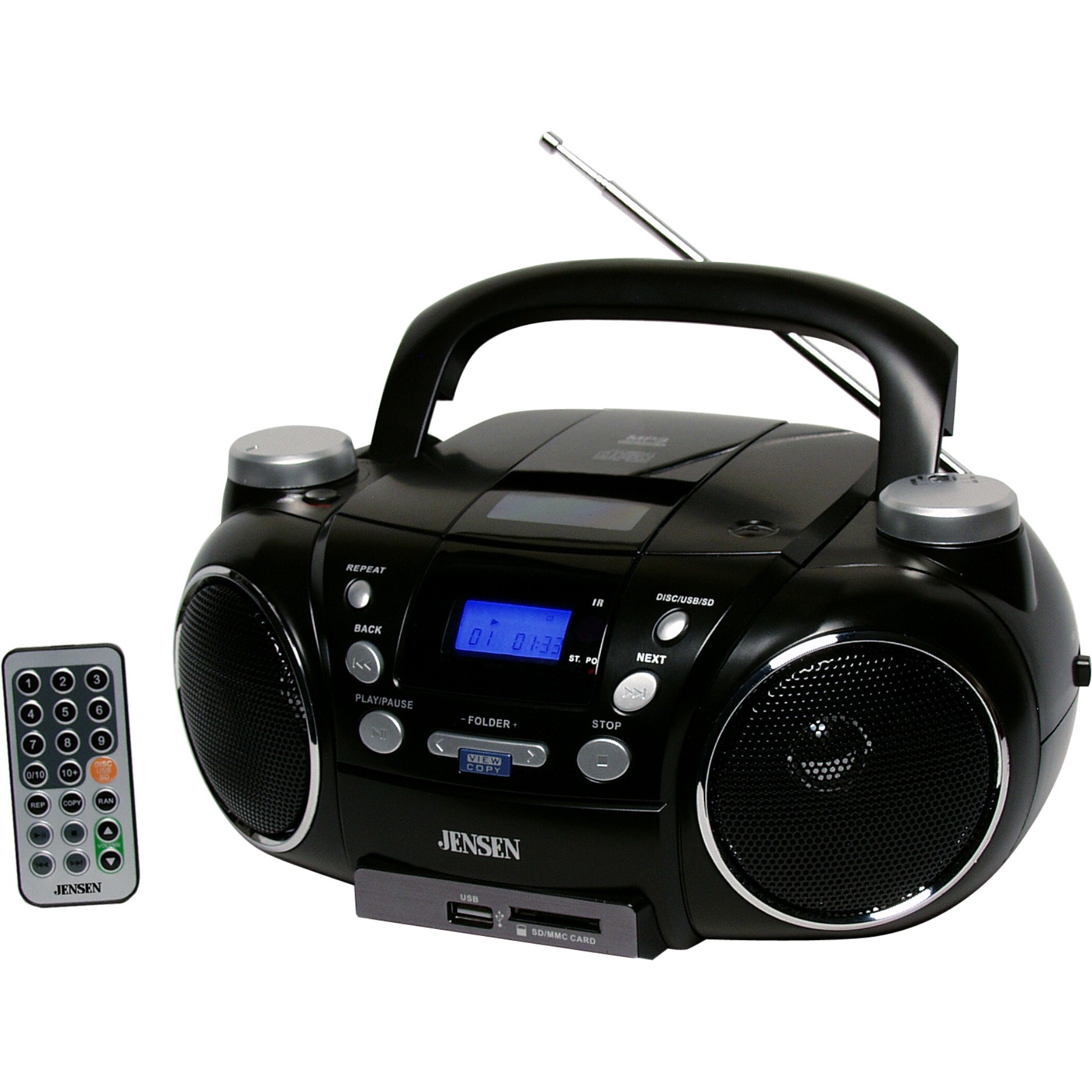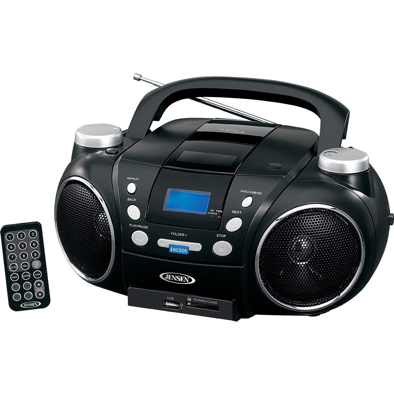 JENSEN CD-750 PORTABLE AM/FM STEREO CD PLAYER WITHMP3 ENCODER/PLAYER TOP-LOADING CD PLAYER; CD-R/RW, MP3/WMA COMPATIBLE; MULTI-FUNCTION BLUE BACK-LIT LCD DISPLAY; 1-TOUCH RECORDING; AM/FM STEREO RECEIVER; AUXILIARY INPUT JACK FOR CONNECTING IPOD, MP3 OR OT..
