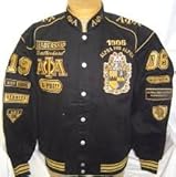 Black jacket with yellow trim & embroidery. 1906 Alpha Phi Alpha and fraternity crest are all nicely embroidered on the left side of chest. "Leadership Brotherhood"..