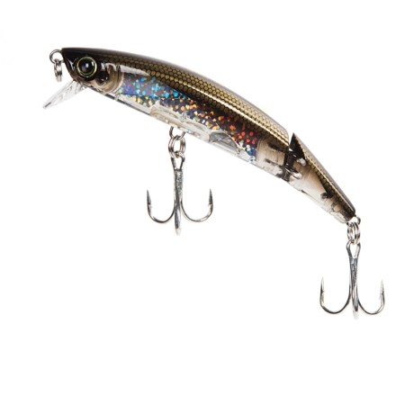 CLOSEOUTS . The unique triangle lip design on Yo-Zuriand#39;s Crystal 3D Minnow jointed floating lure causes the bait to run at or just below the surface, allowing you to target fish in very shallow water. The hinged body joint adds a tight wiggling patter..