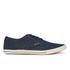 Men?s navy canvas pumps from Jack & Jones. Crafted with waxed canvas uppers, the ?Spider? trainers comprise a rounded toe and a lace up fastening boasting tonal, rounded laces and a contrasting top eyelet. Placed upon a red, textured rubber sole with a str..