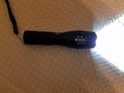 This little flash light actually surprised us.Even though we have yet to get the 18650 battery, it's extremely brightjust using the 3 AAA batteries.We have another similar flash light from an outdoor sporting magazine.This one is definitely much brighter.This came with the charger for the re chargeable 18650 batteries, but not the battery.It's made of a good quality aluminum.It has a nice feel in your hand with it's weight.It's easy to adjust the beam from just pushing out or pulling back in the main part of the flash light.We haven't tested the water resistance yet, since it hasn't rained in the time we have had it.I was going to us this in out emergency packs, but so far it's been used a lot to even consider that now.I guess I will be buying more!These are the perfect size for keeping in your vehicle.We have those popular heavy duty flashlights, the ones the cops love to use.But this one is actually...Read more if (typeof amznJQ != "undefined") { amznJQ.onReady('jQuery', function() { amznJQ.available('popover', function() { var widgetDom = jQuery("#R1F14AF695FCME_imageSection_3F6C037E-3A79-11E6-AADC-039F3E0B6174"); var images = widgetDom.find(".review-image-thumbnail"); for (var c=0;c