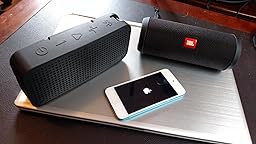 I came to Amazon to buy a JBL Flip 3 based a widely positive reviews and a desire to have a speaker that I could use outdoors without worrying too much about sudden showers, dust and other hazards of the elements. While searching for it, however, I came across Anker's newest entry, the SoundCore Sport XL. Given the price, my general satisfaction with Anker, and Amazon's solid return policy, I decided to give both speakers a try. I'll note that the SoundCore Sport XL is probably more comparable to the JBL Charge 2 given that both units have a USB port to let you charge your phone or other device. The Flip 3 doesn't have charging output port.