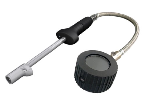 Bleed valve releases air while displaying pressure for accuracy * Heavy duty, flexible hose reaches those hard to get to places * Large, easy to read LCD screen * Bright LED flashlight for aid in the dark * Dual foot with extender helps reach inside the tire Measurement Limited Accutire truck and RV digital tire gauge with LED light and bleed button is perfect for larger vehicles. A bright white LED flashlight is in the handle for checking pressure during nighttime hours. 5 - 150 pounds per square inch ability in a 1/2 pound unit. The digital tire gauge offers a heavy duty, flexible metal compression hose for those hard to reach places. The LCD screen is large and easy to read. The bleed valve enables you to remove air from the tire while reading updates as the pressure changes. A dual foot with extender allow you to reach inside the tire.