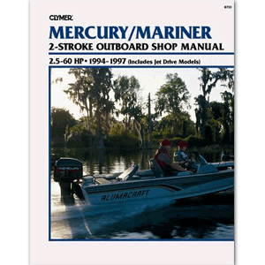 0G531301-on]) / CDM module resistance tests (optional) / Fuel system / Fuel primer and enrichment systems / Engine temperature and overheating / Engine / Specifications CHAPTER FOUR / LUBRICATION, MAINTENANCE AND TUNE-UP Hour meter / Fuels and lubrications / Off-season storage / Anticorrosion maintenance / Engine submersion / Cooling system flushing / Tune-up / Specifications CHAPTER FIVE / SYNCHRONIZATION AND LINKAGE ADJUSTMENTS 2.5 and 3.3 hp models / 4 and 5 hp models / 6, 8, 9.9 and 15 hp models / 20-25 hp and 20 Jet models / 30 and 40 hp (2-cylinder models) / 40 hp and 30 Jet models (4-cylinder models) / 50-60 hp and 45 Jet models (prior to serial No. 0G531301) / 40, 50 and 60 hp (serial No. 0G531301-on) / Specifications CHAPTER SIX / FUEL SYSTEM Fuel pump / Carburetors / 2.5 and 3.3 hp carburetor / 4 and 5 hp carburetor (with integral fuel pump) / WMC series carburetor (with integral fuel pump 6-25) / WMA series carburetor (40 hp 4-cylinder and 30 Jet models) / WME series carburetor (30 and 40 hp 2-, 50-60 hp and 45 Jet) / Fuel primer solenoid (6-25 hp and 20 Jet remote) / Fuel primer valve (30-60 hp and 30 and 45 Jet remote) / Antisiphon devices / Fuel filters / Fuel tanks / Fuel hose and primer bulb / Reed valve service / Fuel bleed (recirculation) system / Specifications CHAPTER SEVEN / IGNITION AND ELECTRICAL SYSTEMS Battery / Battery charging system / Fuses / Starting systems / Ignition systems / Capacitor discharge ignition (2.5, 3.3 4 and 5 hp) / Alternator driven capacitor discharge ignition (6-60 hp and 30 and 45 Jet) / Capacitor discharge module (CDM) ignition / Specifications CHAPTER EIGHT / POWER HEAD Power head break-in / Lubricants, sealant and adhesives / Sealing surfaces / Fasteners and torque / Removal installation / Disassembly / Cleaning and inspection / Assembly / Specifications CHAPTER NINE / LOWER GEARCASE AND JET DRIVE UNIT Lower gearcase / Gear case operation / Gear ratio / High-altitude operation / Service precautions