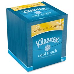Facial tissue soothes on contact by actively releasing a cool sensation to relieve your sore nose with a unique cooling comfort. Enriched with cooling moisturizers, the three-ply tissue actually draws heat away from the skin and creates cooling on contact. Kleenex Cool Touch facial tissue is made with a proprietary blend of ingredients, including cooling moisturizers and aloe.