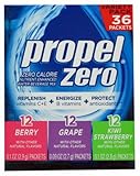Propel Zero helps to replenish, energize and protect your body. With vitamins B, C, E and antioxidants, it quenches your thirst with great tasting flavors and is healthier than tap water. This pack features 3 different flavors (berry, grape, & kiwi strawberry) along with 36 packets (12 of each flavor). Pour 1 packet into 16.9 fl oz. bottle water for great tasting, no calorie water or a 20 fl oz bottle for a lighter taste!