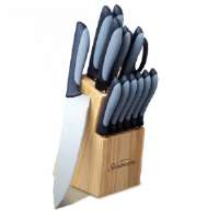 Durant 14 pc Cutlery Block Set, PP Rubber Hdle w/ Pine Wood Block Sunbeam