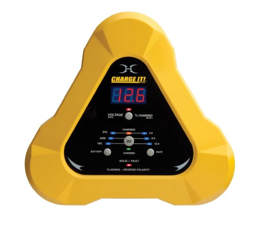 12 volt operation * 12/6/2 ampere fast/medium/low charge rate * Automatic operation * Properly charges multiple battery types * Smart clamp technology for ease and safety Automatic operation for extreme ease of use Compatible with multiple battery types, including Conventional, AGM and Gel Cell Smart clamp technology provides polarity protection for safety: sends power to clamps only when a proper battery connection is made 2A mode is great for charging small batteries and for extended seasonal charging Unique, lightweight design with integrated cable management The only tool you’ll need for all of your battery management tasks. With the CHARGE IT!® 4500 Series, everything in your garage can be kept charged up and ready for use. Big or small, summer or winter, no matter what type of lead acid battery it utilizes. With multiple charge rates and the ability to properly charge many battery types, CHARGE IT! is your go-to battery service tool for everything from motorcycles and personal watercraft to cars, trucks, SUVs and more.