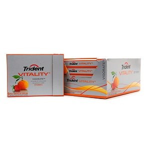 Trident Vitality - Vigorate - a burst of citrus and strawberry with vitamin C - Sugarless . 10 ct box. Each sleeve has 9 pieces of - 10 sleeves per box 90 pieces of total.