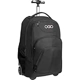 Internal padded fleece lined laptop compartment fits most 17" laptops Large main compartment fits books, binders and files Ambidextrous telescoping pull handle Heavy duty chassis with off-road wheels Zippered valuables pocket Go back to school, off to the skate park, or on an overnight adventure with your essentials securely stowed in the OGIO Phantom Wheeled Pack. This lightweight and durable dobby polyester and nylon blend rolling backpack features vertical skate carry straps; a spacious main compartment with an ultra-padded, anti-scratch-lined laptop computer section and plenty of room for your clothing or for your books and binder; a plush-lined media pocket for protecting your favorite electronic device; and a deluxe zippered organizational panel with pen loops and open and zippered pockets for keeping small necessities neat and handy. The OGIO Phantom Wheeled Pack boasts a deluxe telescoping handle and a heavy-duty wheel chassis with off-road wheels for smooth and easy maneuvering.