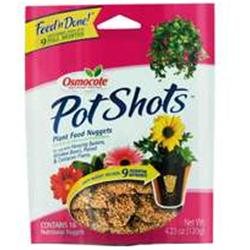 Pre-measured nuggets for mistake proof feeding of container plants Nuggets feed (4) 10-12 in. outdoor containers for 9 months and delivers 9 essential nutrients For use with hanging baskets, window boxes, potted and container plants Contains 16 nutritional nuggets per bag Bag Size Oz. Bag=4.23