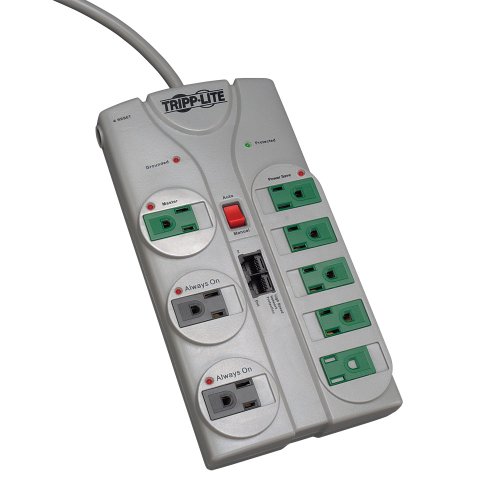 Product DescriptionProtect your valuable electronics from damage and performance problems with Tripp Lite's TLP808NETG ECO-Surge Suppressor! In one compact, cost-effective unit, the TLP808NETG provides comprehensive protection for desktop computer setups and all electronics while saving up to $40 per year on electric bills with its innovative green outlet array. The TLP808NETG is also the only surge suppressor of its kind that is 100% compatible with all desktop computers, notebooks and netbooks, thanks to a unique selectable wattage switch.The TLP808NETG features a high 2160-joule surge suppression rating more joules mean more protection! It also provides EMI/RFI filtering to eliminate disruptive line noise interference and ensure peak component performance. A total of 8 AC outlets plus single-line RJ45 Ethernet protection provide the capacity you need to protect all your components. The TLP808NETG comes with $150,000 Ultimate Lifetime Insurance protection for connected equipment, and a lifetime product warranty. Technical DetailsView largerGreen surge protection for a