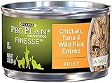 Twenty-four (24) 3-Ounce cans of Purina Pro Plan Finesse Adult Chicken Tuna and Wild Rice Entrée Made with Real Chicken and Tuna Complemented with Wild Rice Rich in omega fatty acids for healthy skin and coat Multiple Sources of High Quality Protein To Help Promote Ideal Body Condition Offers balanced nutrition to help support a strong immune system Great Taste Guaranteed Every cat is different in her own, wonderful way. That's why Purina Pro Plan offers three product categories - Savor, Focus, and Finesse. So find the Pro Plan formula that will bring out the best in your cat. And give her the nutrition she needs to be graceful. To be agile. To be great.