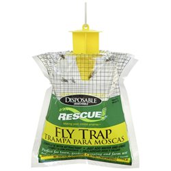 Features:Contains no poisons or insecticides Completely safe for humans and animals Perfect for lawn, garden, camping, and farm useEnvironmentally responsible, and it works No more sticky flypaper or dirty fly swatters Fully disposable for clean and easy convenience Simply add water and hang outdoors What's In The Box:Rescue FTD-DB12 Disposable Fly Control Trap with Attractant