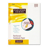 Three-hole punched for use in standard three-ring binders. Reinforced rip-proof spine keeps pages from tearing out. Sheet Size: 8 1/2 X 11; Paper Color(s): White; Paper Weight: 20 lb; Ruling: College.