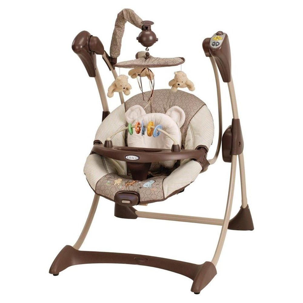 Comfort baby in style with this ultra-contemporary infant swing. The attractive innovative open top design and the one-hand flip-up tray make getting baby in and out a snap while the 3-level seat recline helps keep her nice and cozy. The mobile rotates with the swings movement and has fun toys that are eye-catching to mom and child alike. And with 6 speeds and a selection of classical melodies and nature sounds this swing allows you to customize babys swinging experience to suit her mood. Loaded with features the stylish Silhouette Infant Swing is the ideal blend of form and function. For babies up to 30 lbs.