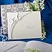 Gorgeous calla lily design wedding guest book * Measures 9 7/8" x 7 7/8" * White poly resin detailed/carved calla lily appliqué on the cover * Interior pages are designed for your guests' best wishes * Delightfully packaged in a clear topped box with a slate gray and white damask design base