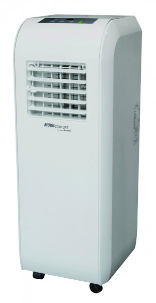 Efficient and powerful; the Mobile Comfort Portable Air Conditioner provides cooling power to any home. This mobile air conditioner has a compact footprint and is set on four sturdy casters; making it easy to move around. Able to be operated with the use of a remote control; this air conditioning unit is easy to use. This AC unit includes a single hose exhaust system and includes a window mounting kit to keep the exhaust out of the home. Other features of this air conditioner include an easy-to-read LED display; a dehumidifying mode and a circulating fan. A "sleep mode" feature decreases the cooling by 2 degrees after one hour and by 4 degrees after two hours; saving on compressor usage and using less energy while you sleep. The fan also has three speeds and this unit has four-way adjustable louvers. Technical Specifications: Power Supply (Ph / V / Hz): 1 / 115 / 60 Rated Cooling Capacity (BTU / Hour): 8000 Dehumidifying Capacity (Pints / Day): 28.8 Cooling Power Input (Watts): 935 Rated Current Cooling (Amperage): 8.3 EER / C.O.P.: 8.5 EER Noise Level (db (A) h / l): <=56 Air Flow Volume (CFM): 165 Weighs 52 pounds Requires R-410A refrigerant Refrigerant Charge (Oz): 13; 76 Cord Type: Leak Current Detection and Interruption (LCDI) Also Included: One exhaust vent hose and an adapter One single hose panel and two sliding panel extensions One drain hose Remote Control (Requires two AAA batteries; which are included)