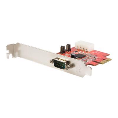 StarTech 1 Port Native PCI Express RS232 Serial Adapter Card with 16950 UART Type: PCI Express to Serial Port Card External Ports: 1 x Serial Port Data Transfer Rate: Up to 460.8 Kbps Operating Systems Supported: Windows XP, Vista Compatibility: Self service automated machines and kiosks to control serial devices such as scales, touchscreens, magnetic card readers, bar code scanners, receipt printers, label printers POS retail applications in grocery stores, and any other retail store to control keyboards, cash drawers, receipt printers, card readers / card swipes, scales, and elevated displays on poles Bank teller workstations in either full profile or low profile versions to control their serial devices such as cash drawers, card readers / card swipes, printers, keypads / pinpads, pen pads Standard ATM automated teller machines to control keypads, receipt printer, card readers / card swipes, touch...