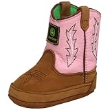 Stitch and turn constuction Velcro closure on back Dress your baby in true western style New from the Johnny Popper Series come these John Deere infant Johnny Poppers boots Your baby will be set in country style and comfort, too Soft felt lining and insole. Stitch design on shaft. John Deere logo patch on front of shaft. Toe medallion. Soft, comfortable sole with green rubber tread padsfy round toe design. Sizes: 1M(0-3 months), 2M(3-6 months), 3M(6-9 months), 4M(9-12 months).