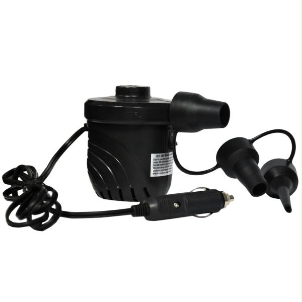 High Pressure DC12V Electric Pump The High Pressure DC12V Electric Pump is recommended for small inflatables and portability. The DC12V Electric Pump features 1.2 PSI, 25CFM, a DC receptacle plug for boat, RV or car, and 3 standard inflation adaptors. 1.2 PSI / 25 CFM 1.2 PSI / 25 CFM 3 standard inflation adaptors DC receptacle plug for boat, RV or car Product: RAVE HIGH PRESSURE CD 12V ELECTRIC PUMP Manufacturer: RAVE SPORTS Manufacturer Part No: 02346 UPC: 695742023464