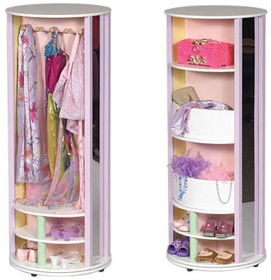 This is a wonderful dress-up toy for kids to put stuff, sort, use the mirrors to see themselves in their costumes and be able to actually see all the dress-up stuff they have. The only thing is that 1 of the shelf pieces on the back portion (opposite side where the hanging hooks are) did not fit at all to where it was 1" too short to reach the groove where it should have gone into. There is no way to fix it. So, we are just leaving that storage bin off and using it as an open shelf. It's not as useable that..