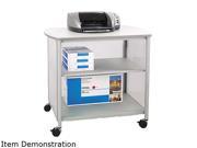 "0858GR2200 lb25.5""31""34.8""449 lbMobile machine stand offers a generously sized, laminate top (34-3/4"" wide x 25-1/2"" deep) to accommodate most office machines. Roll it easily on four 2-1/2"" diameter swivel casters (two locking) to where you need it. Store office supplies on two shelves below. The top shelf holds 100 lb., and the lower shelves hold 50 lb. Machine stand also features cord management, a steel frame and translucent polycarbonate panels. Steel frame has a silver powder-coat finish.FaxPrinterSmall CopierImpromptu Deluxe Mobile Machine Stand4 x Leg2 x Side Panel1 x Back Frame1 x Back Panel1 x Front Frame2 x Filler Strip1 x Bottom Shelf1 x Center Shelf1 x Top Panel2 x Caster with Brake2 x Caster without Brake12 x Long Screw12 x Short ScrewChinaGREENGUARDGrayImpromptuImpromptu Deluxe Mobile Machine StandLifetimeMulti Kitchen Appliances StandNoPolycarbonateSafcoSafco ProductsSilverSteelYeshttp://www.safcoproducts.com"