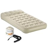 The comfortable construction offers extra support with a built-in pillow, and the rechargeable, hand-held pump makes for fast inflation from a 12-volt car outlet. When youre ready to pack up, the Whoosh valve completely deflates the bed quickly and easily. The bed stores conveniently in a carry bag until your next adventure, outside or indoors.