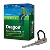 Turn talk into text - faster and more accurate than typing Product Information Most people speak over 120 words per minute but type less than 40 words per minute. What if you could create email, documents and spreadsheets simply by speaking What if you could control your PC just by talking to it, starting programs, using menus, surfing the Web Dragon NaturallySpeaking 10 Preferred gives small business and advanced PC users the power to create documents, reports and emails three times faster than most people type - with up to 99% accuracy. Surf the Web by voice or dictate and edit in Microsoft Word and Excel, Corel WordPerfect, and most other Windows-based applications. Create voice commands to quickly insert blocks of texts or images - such as your name, title, and signature. Dictate into a handheld device when you're away from your PC, or use a Bluetooth microphone for the same great dictation results without the wires. Dragon NaturallySpeaking works with the most commonly used desktop applications, including Microsoft Word, Internet Explorer, AOL and more! Just about anything you do now by typing can be done faster using your voice. Create and edit documents or emails. Open and close applications. Control your mouse and entire desktop. The biggest reason more people worldwide rely on Dragon NaturallySpeaking: it works. With more than 175 awards for accuracy and ease of use, it's the undisputed leader in speech recognition software. If you want to get more done, more quickly, just say the word and Dragon NaturallySpeaking will transform your productivity. New Features Dragon NaturallySpeaking is faster and more accurate than ever, delivering up to 20% more accurate results than Version 9. Your transcribed words now appear on the screen in half the time it took in the past. With new Dragon Voice Shortcuts, you can search the Web for information, products, news and more with a single voice command. Updated graphical icons for the DragonBar are intuitive and easy to