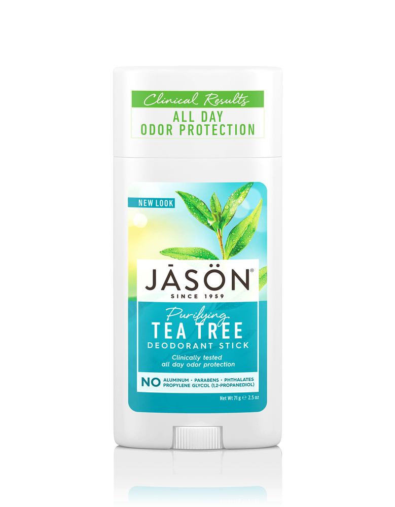Purifying Tea Tree Deodorant Stick by Jason Natural Cosmetics 2.5 oz Stick Purifying Tea Tree Deodorant Stick 2.5 oz Stick Product Enjoy the carefree feeling of all day odor protection you can rely on. Our clinically tested formula of Zinc Ricinoleate Corn Starch and Baking Soda neutralizes odor while Tea Tree Oil and Grapefruit Seed Extract known for their antimicrobial properties help fight odor-causing bacteria. Directions Apply to underarms only. Other Ingredients Propanediol Aqua (Water) Glycerin Sodium Stearate Zinc Ricinoleate Polyglyceryl-3 Caprate Melaleuca Alternifolia (Tea Tree) Leaf Oil Citrus Grandis (Grapefruit) Seed Extract Allantoin Behenyl Alcohol Ethylhexylglycerin Glyceryl Stearate Silica Sodium Bicarbonate Sucrose Cocoate Tocopheryl Acetate Zea Mays (Corn) Starch Amyl Cinnamal Benzyl Benzoate Benzyl Salicylate Citronellol Isoeugenol Fragrance (Parfum). Does Not Contain Parabens GMOs Petrolatum Artificial Colors Phthalates Aluminum Propylene Glycol Warnings Keep out