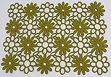 13" x 18" felt table placemat * Cut out flower pattern * Manufactured by Saro This bold felt placemat from Saro is a chic way to brighten up the dinner table. Made from thick green felt, this placemat features a fantastic cutout flower pattern reminiscent of 60's sensibility. See matching Saro felt cutout tableware also on Amazon.