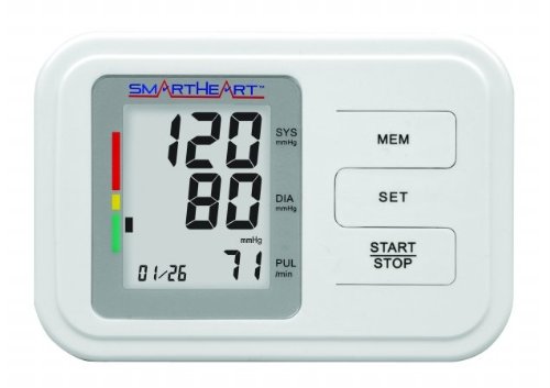 Veridian Healthcare 01-550 SmartHeart Automatic Digital Blood Pressure Arm Monitor, Clinically accurate readings, European Society of Hypertension validated, One-button blood pressure measurements, Large LCD display, Fully automatic inflation and deflation, Simultaneous systolic, diastolic and pulse results, UPC 845717015509, 1-person memory bank holds 60-readings, Memory recall with date/time stamp, Average of last 3 readings, Hypertension Indicator, Irregular Heartbeat Detection, Automatic shut-off, Latex-free adult cuff fits arm size 8-3/4" - 12-1/2", Storage pouch, 4 AA Batteries included available on February 06 2013 from Amazon for 29.00