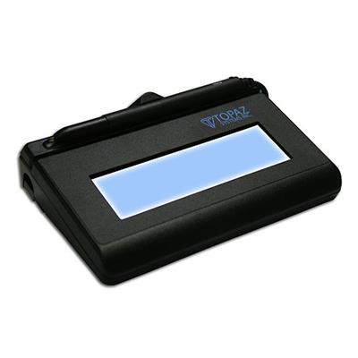 3rd-generation touch-screen signing surface for cost efficiency LCD display for customizability Small size and weight for portability High-quality biometric and forensic capture Touchscreen with passive stylus SigLite 1x5 LCD is Topaz's low-cost pressure-sensitive electronic signature capture pad. SigLite features all the high-quality biometric and forensic capture techniques of a SignatureGem LCD tablet but with a low-cost touchpad and stylus in place of the more rugged digitizing pen and inert tempered glass surface of the SigGem tablet series.